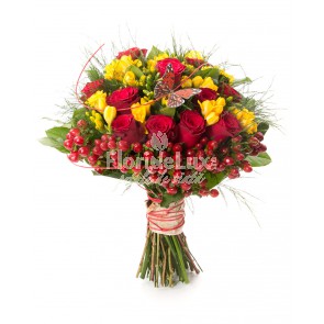 buchet_trandafiri_rosii_si_frezii_galbene